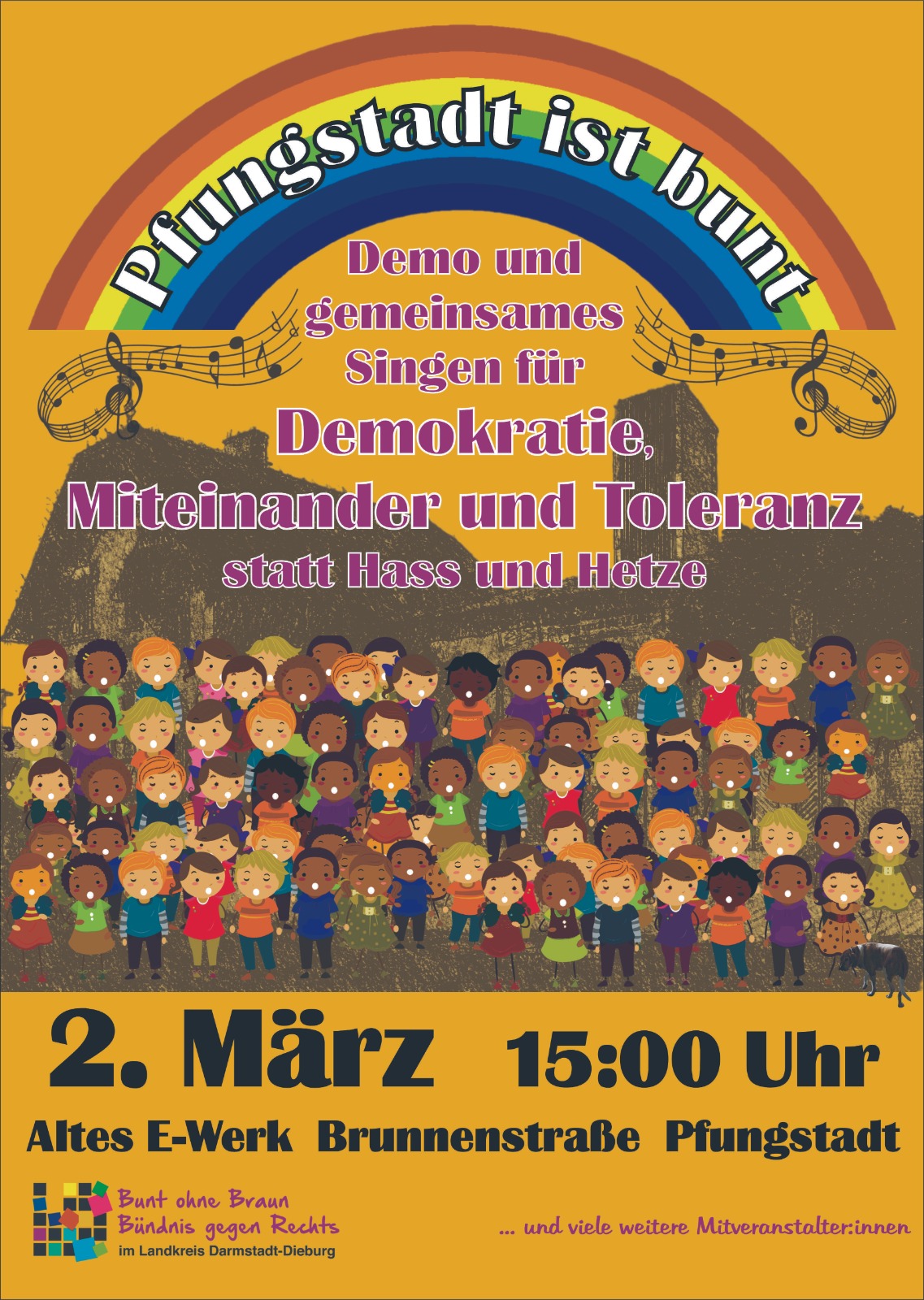 Wir machen auf die Demo am 2. März aufmerksam. Auch Vertreter der Evangelischen Kirchengemeinde Pfungstadt werden sich beteiligen.